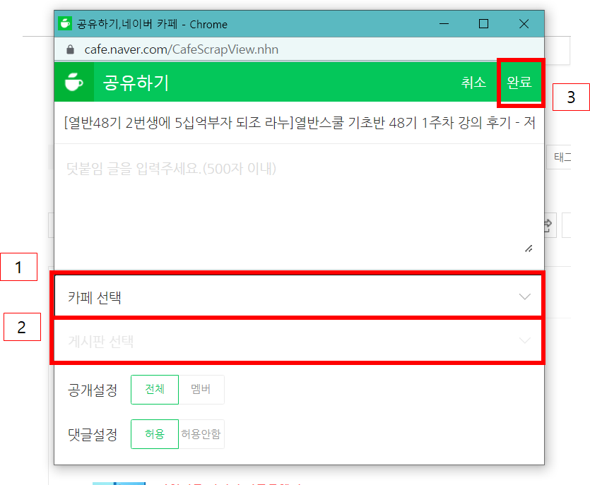 그 카페에서 이 글이 올라갈 게시판을 선택하신 후