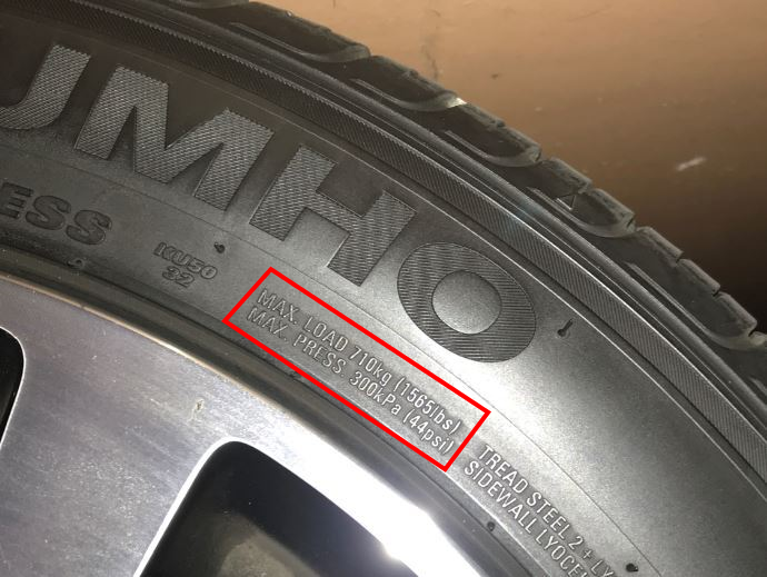 자동차 타이어에 보면 위 사진처럼 최대 공기압이 써있습니다. 위 타이어의 경우에는 300kPa, 44psi입니다.
