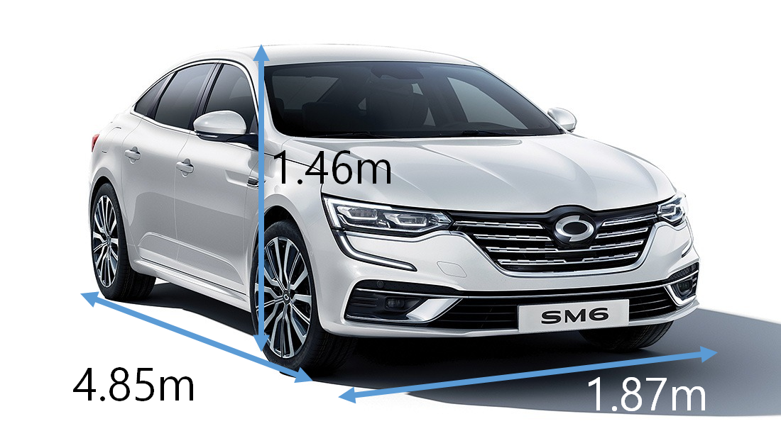 르노코리아 SM6의 경우 차 폭은 좀 더 넓지만 차 길이는 현대 쏘나타, 기아 K5에 비해 좀 더 짧습니다.
