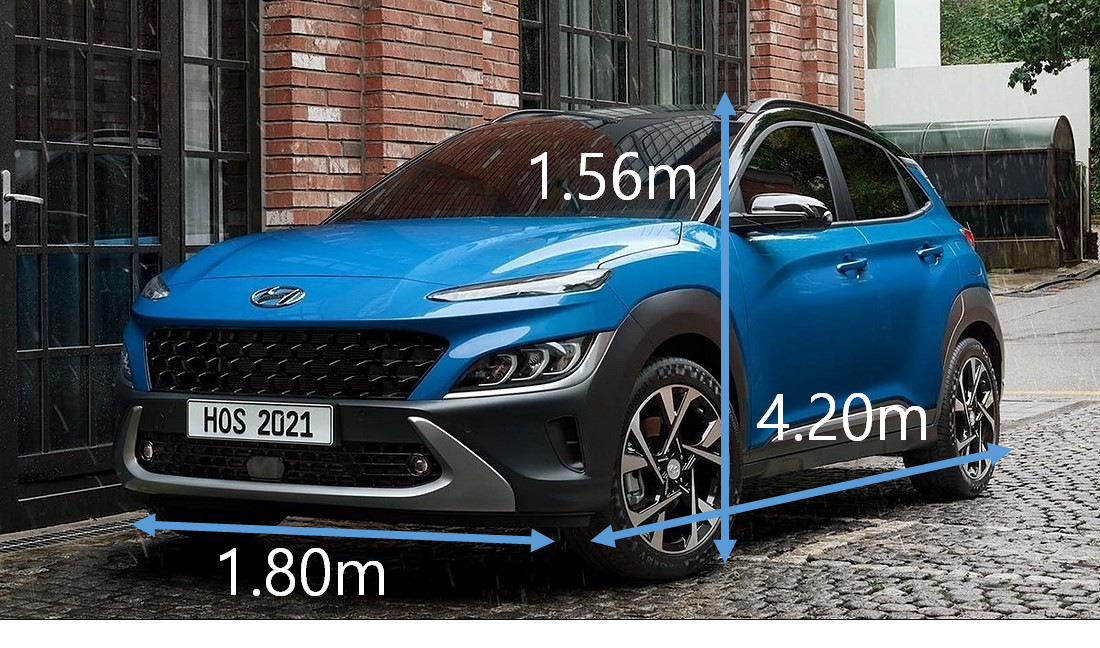 앞뒤 크기는 기아 니로 하이브리드가 더 크지만, 차 높이는 현대 코나 하이브리드가 더 높습니다.