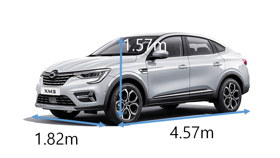 르노코리아 XM3 차체 크기가 압도적입니다. 거의 준중형 SUV 급 크기입니다. 차체 길이로는 쌍용 코란도보다 더 깁니다.