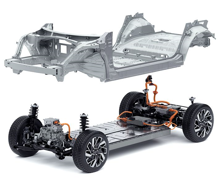 최근에는 전기차 프레임을 바디 온 프레임 방식으로 생산하고 있습니다. 아무래도 무거운 배터리 무게를 버티고 안전성을 확보하기 위해서는 바디 온 프레임이 더 적합했던 것으로 보입니다.