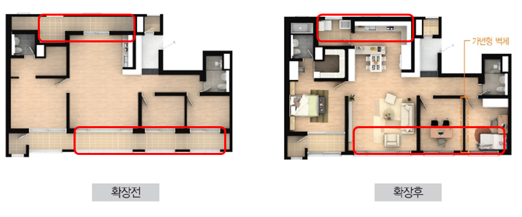 요즘은 아파트 분양받을 때 발코니 확장을 하는 게 거의 기본입니다. 발코니를 좋아하시는 분이 있고 아니신 분이 있긴 합니다. 발코니 확장을 하면 집을 보다 넓게 쓸 수 있다는 장점이 있습니다.