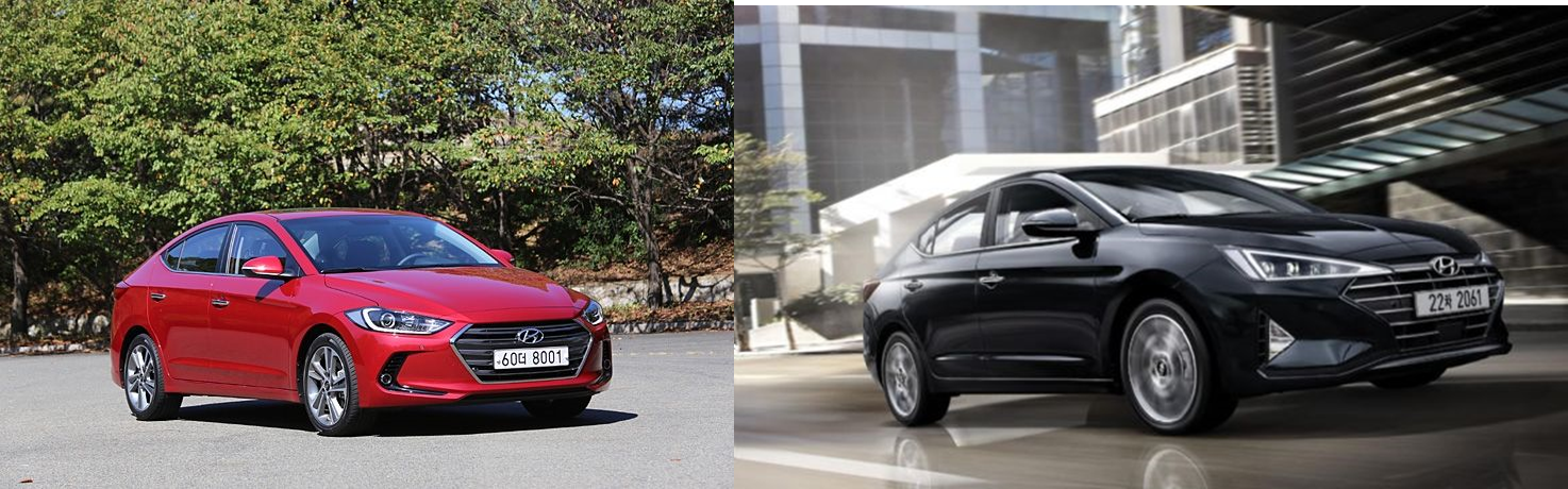 좌 - 1세대 아반떼, 우 - 7세대 아반떼