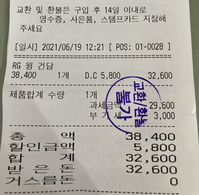 ▲ RG 윙건담 tv판 구매 영수증 - 건담베이스