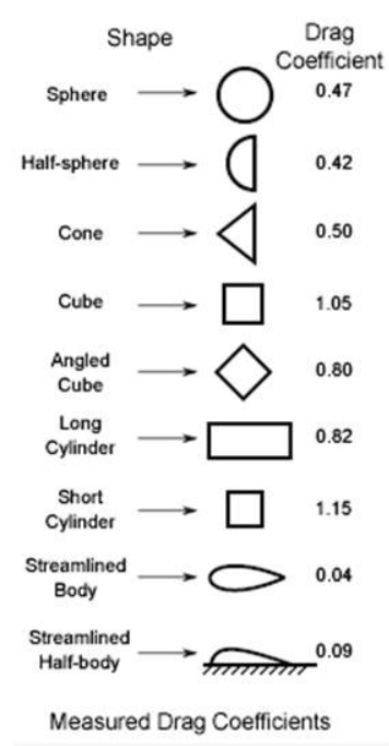 위 사진을 보면 가장 아래에서 두번째에 위치한 Streamlined Body, 유선형 물체의 항력계수가 가장 낮습니다.