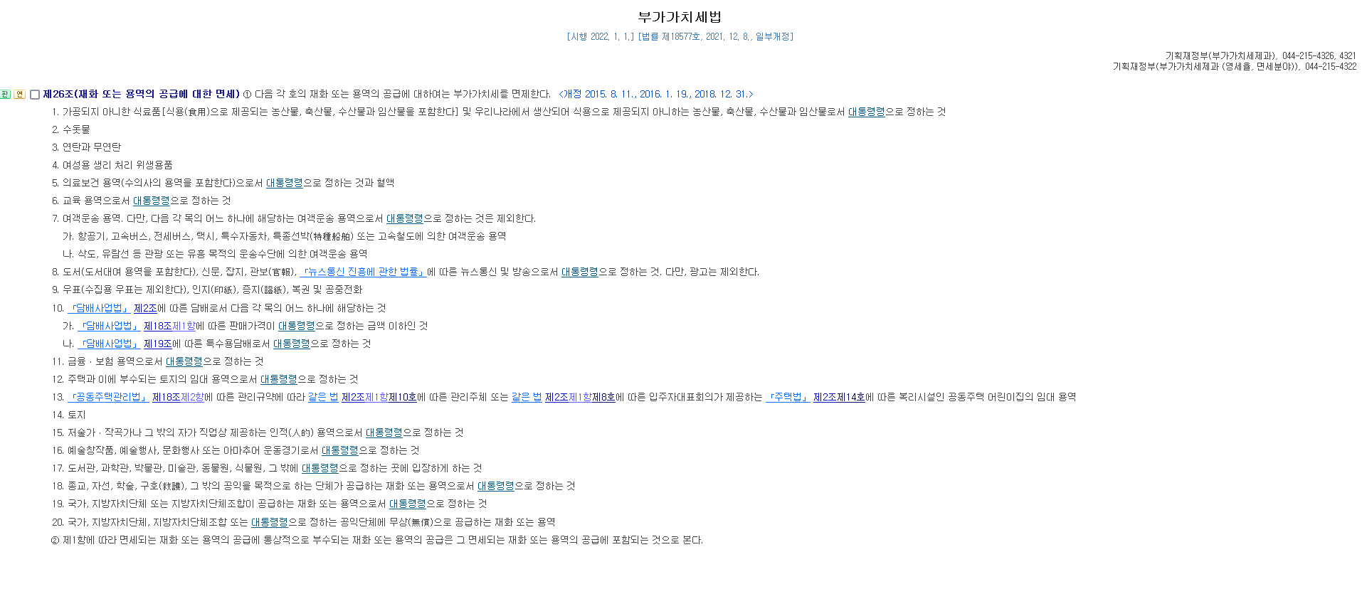 결론부터 말씀드리면 부가가치세법 제26조 제1항 재화 또는 용역의 공급에 대한 면세 부분에 잘 나와있습니다.