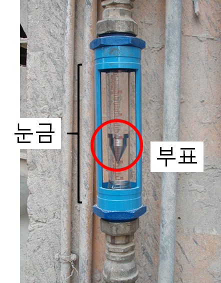 유량에 따라 부표의 위치가 높아지고 낮아지는 특성을 이용해 유량을 측정하는 유량계입니다.
