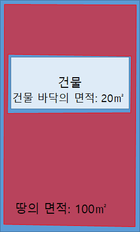 땅의 면적 100㎡에서 건물의 면적은 20㎡이므로