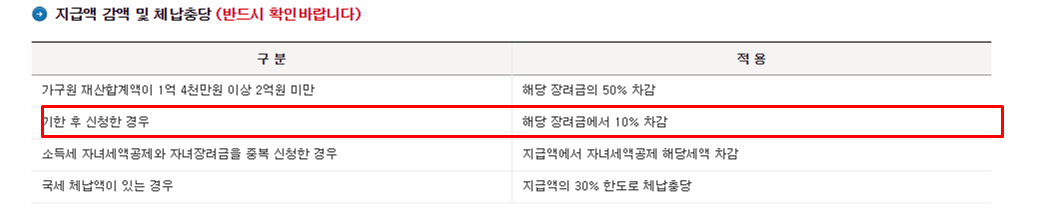 기한 후 신청은 원래 내가 받을 근로장려금에서 10%가 차감된 후 지급받습니다. 뭐든지 미리미리 하는 습관이 중요한 것 같습니다.