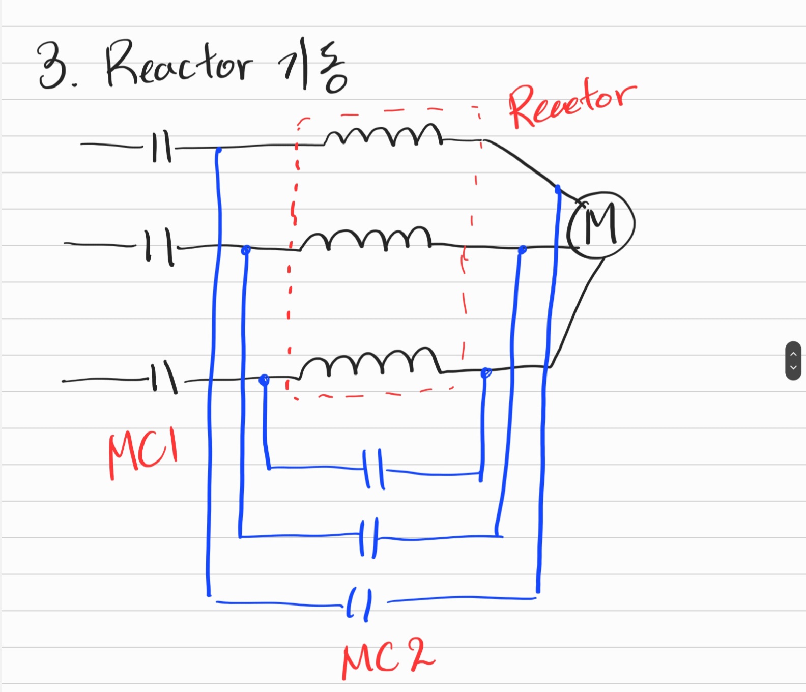 - 기동시: 기동보상기 경유 (MC2 ON, MC1 OFF)